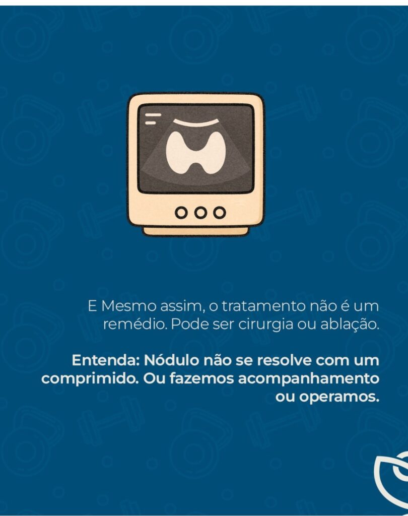 Só indicamos intervenção em situações específicas: quando o nódulo cresce demais, quando começa a incomodar, quando há alteração nos exames… ou quando o incômodo é estético, emocional, íntimo — e o desejo do paciente merece respeito.