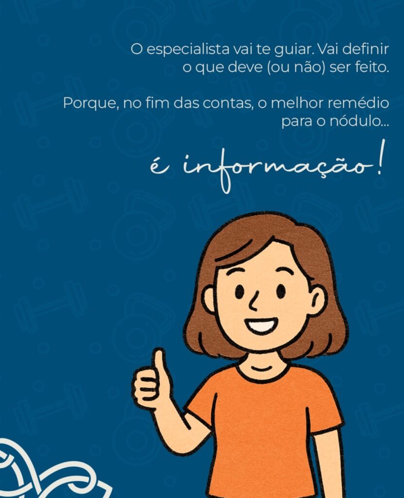 Porque a maioria dos nódulos é benigna. Não dói, não cresce, não atrapalha. Só aparece no ultrassom e fica lá, quietinho. E, nesse caso, o melhor tratamento… é não tratar. Acompanhamento é cuidado. E cuidado também é uma forma de agir.